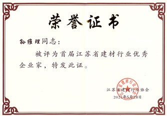 • 董事長孫維理榮獲“2021年江蘇省建材行業(yè)優(yōu)秀企業(yè)家”榮譽證書